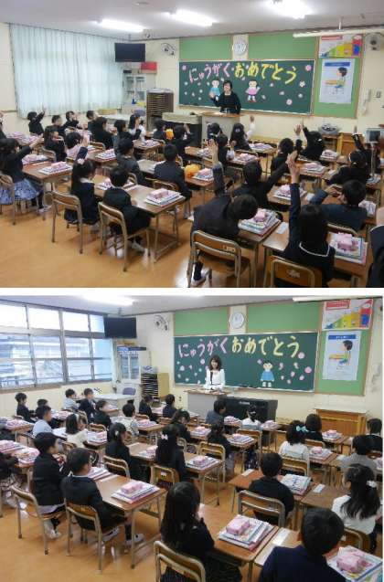 入学式で、1年の担任の先生を発表しました。新2年生がお祝いの言葉と「トイトイ」という歌を歌ってくれました。元気いっぱいに歌ってくれ、とてもよかったです。「トイトイ」とは大丈夫という意味だそうです。最後に焼野小学校の校歌を歌って披露してくれました。教室では担任の先生からいろいろな説明をうけ、教科書や書類などをもらいました。