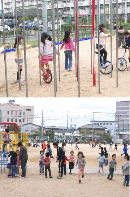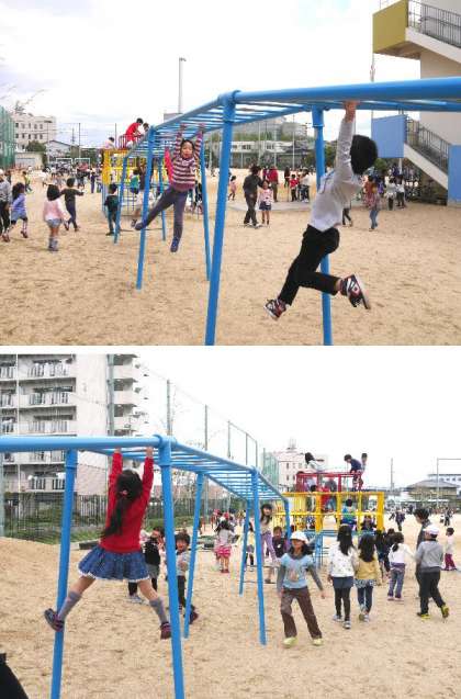 3限目のあとの20分休みには、1年生も元気よく運動場で遊具などで遊んでいました。春のいい気候なので外で遊ぶと気持ちがいいですね。