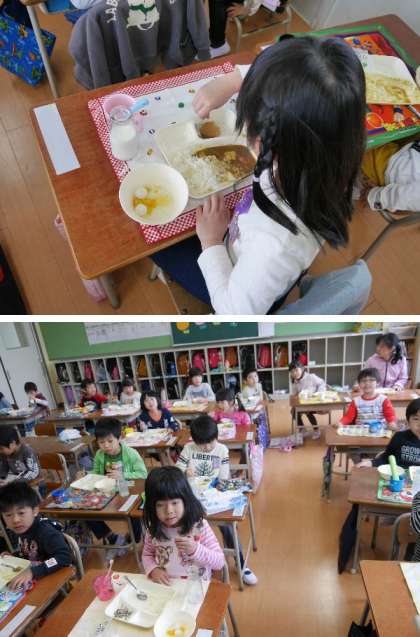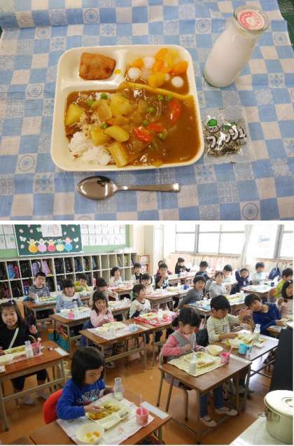 今日の給食は、新1年生の入学お祝いの給食でした。1年生もみんな大好きなメニューです。