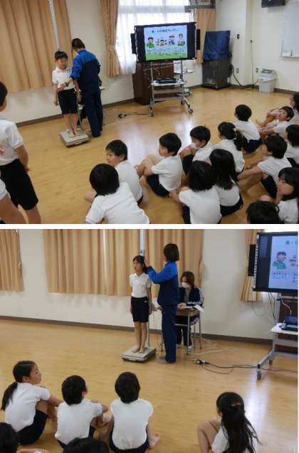 3・4年の発育測定が行われました。保健室の先生から、歯と口の健康についてのお話で、来週の歯科検診にむけて、歯の健康についてを知ることができましたね。健康な歯がないと、おいしく食事できませんね。