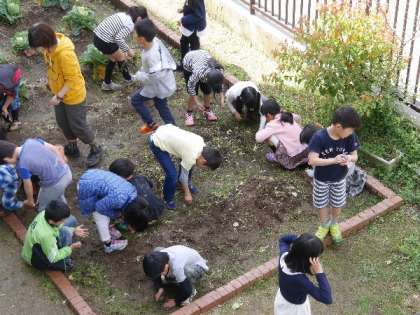 3年生が学習園の雑草をぬいて、植えるための準備をしていました。何を植えるのかな。楽しみです。