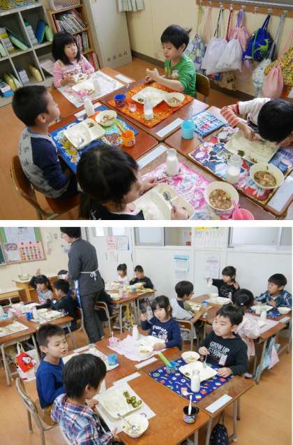 1年生は、今日から給食の食器も自分で運びます。先週は6年生がはこんでくれていました。少しずつ小学校になれて、自分たちでがんばっていきます。