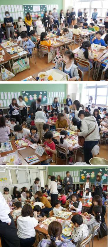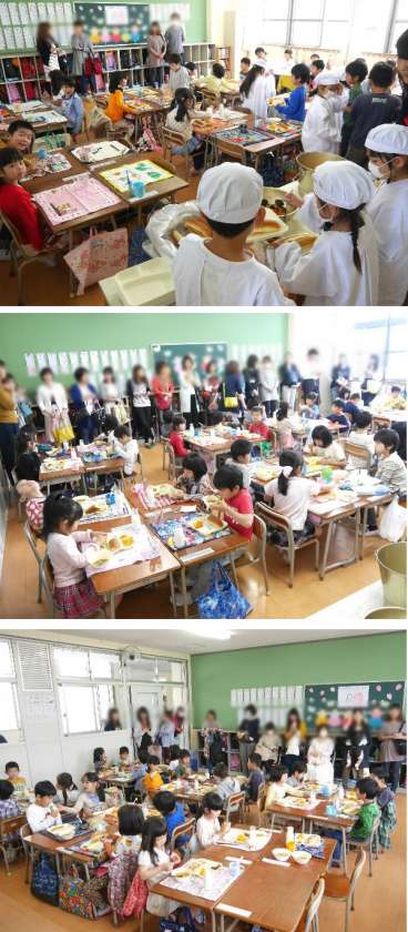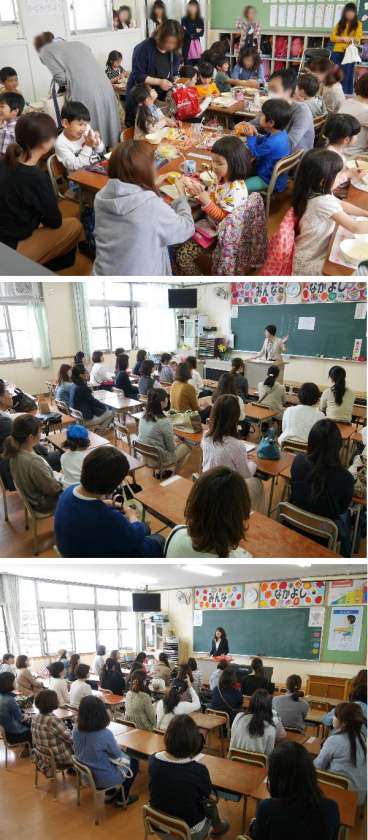 1年の学習参観は給食の参観です。献立は、カレースープスパゲティ、かぼちゃのバター焼き、甘夏みかん、パン、牛乳でした。甘夏みかんは、保護者の方に食べるのを手伝っていただきました。ありがとうございました。給食参観のあと、学級懇談会をおこないました。たくさんの保護者の方にきていただきありがとうございました。