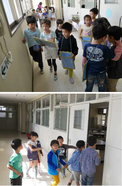 2年生が1年生を案内して学校探検にでかけました。やさしく手をつないで案内してくれています。ほほえましいですね。2年生もおにいさんおねえさんとして、緊張しながらしっかりと案内していました。これからもよろしくお願いします。