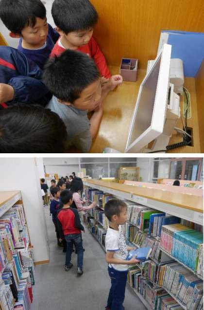 後半は鶴見図書館の本を自由に閲覧いたしました。パソコンでの検索も指でできてとても便利ですね。学校よりもたくさんの本があって、どれを見ようかまよってしまいますね。