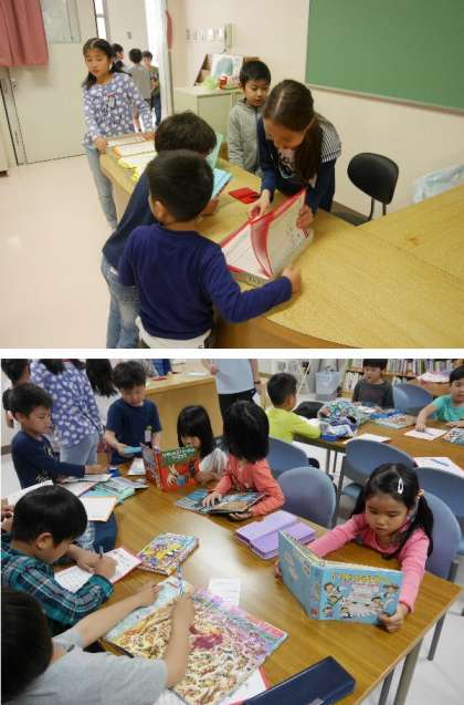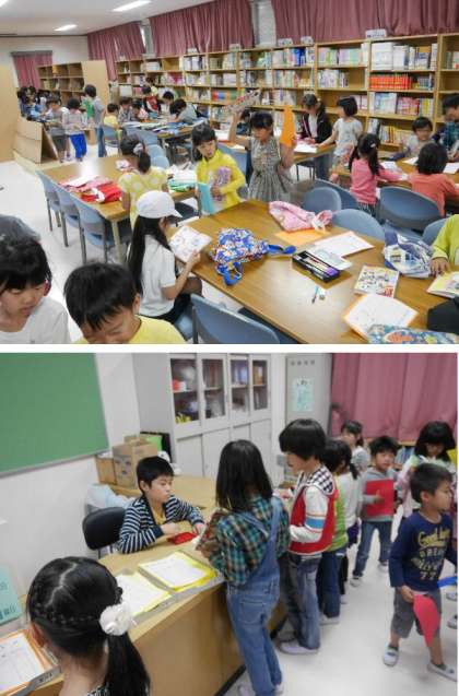 あいにく天気の悪い日がつづきますね。子どもたちも休み時間に外で遊べないので残念です。しかし、図書館開館にはたくさんの子どもたちがやってきて大賑わいでした。図書委員の児童が貸し出しをチェックしてくれています。