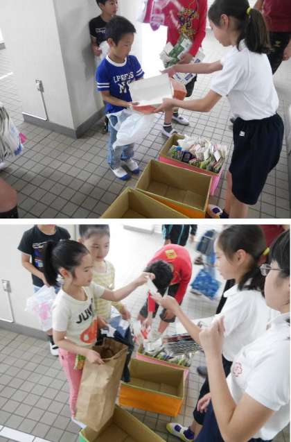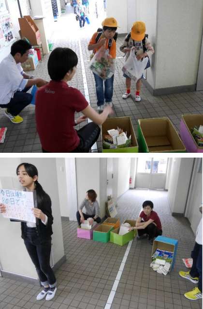 今日は、5月のやけの8の日です。朝、保健室前で、環境委員や、担当の先生が牛乳パックを回収しました。たくさんの人が持ってきてくれました。ありがとうございます。