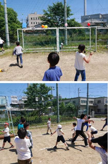 5月末にするスポーツテストのむけた練習が休み時間にもあります。種目をきめて運動場で練習していました。今日はソフトボール投げと50m走の練習です。設置されたコーナで練習です。ボール投げはサッカーゴールの上部につけられた的に投げてあてます。なんかゲームみたいで、楽しく練習できました。50m走もしっかりとタイムをとってもらいました。