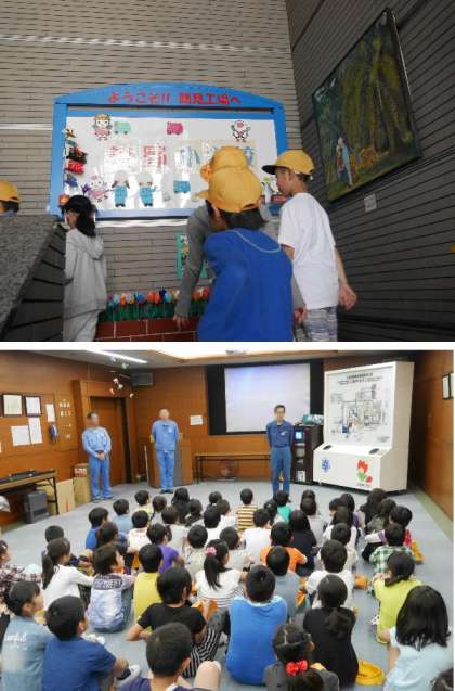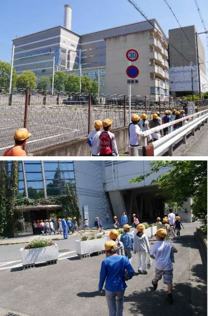 4年生は、鶴見焼却工場へ見学に出かけました。学校から歩いて10程度で到着しました。とても近いですね。焼却工場の方々の出迎えをうけて、玄関で記念の学級写真を撮っていただきました。館内はエアコンがついていて快適でした。所長さんの挨拶と説明をうけて、紹介するDVDをみせていただきました。