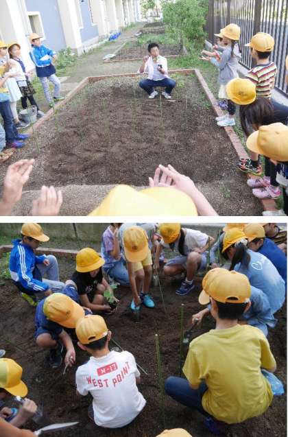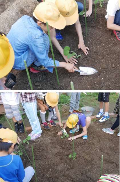 4年生が学級園に「ひょうたん」の苗を植えていました。大きくなって収穫できるようにお世話お願いたします。