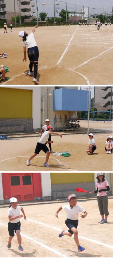 3・4年の体力テストは、50m走だけでなく、ソフトボール投げやたち幅跳びなどをしました。ソフトボールかっこよく投げる姿が様になってますね。