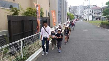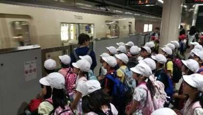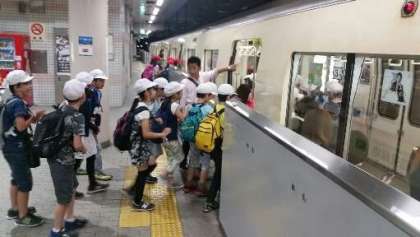 34年生が校外学習に出発します。地下鉄で肥後橋まで行きます。市立科学館でいろいろな体験をしながら学習します。