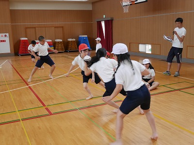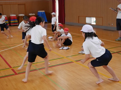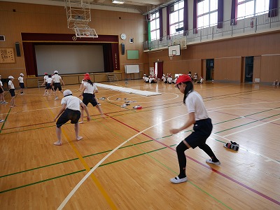 1m幅に引いた3本の線を20秒間でまたぎ越す回数を数える種目です。線は踏んでもO.K.です。2回計測してよい方が記録になります。