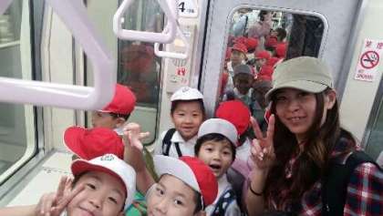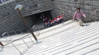 森ノ宮駅に着きました。大阪城が見えます。電車は満員でしたね。