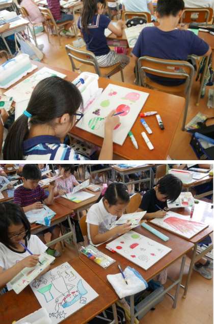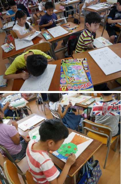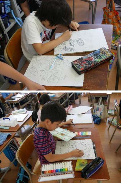 4年生の図工ではコリントゲームを作ります。今回はゲーム盤の下絵を描いていました。上手に描けていますね。