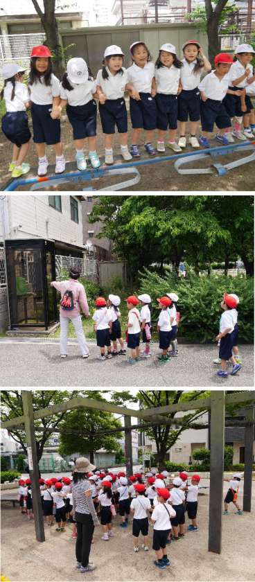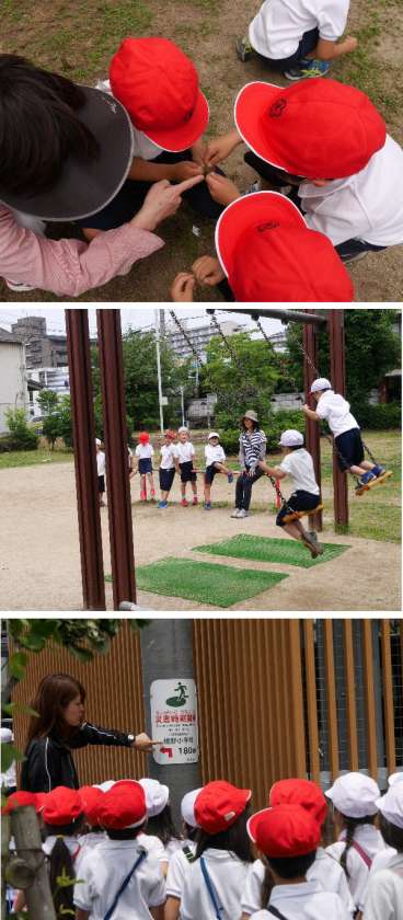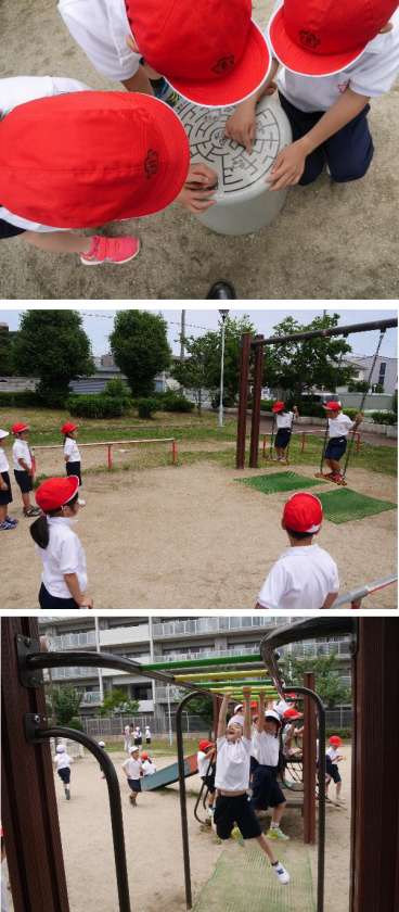 1年生が学校近隣の公園で遊びました。焼野南さくら公園から焼野南公園に来ました。途中、公衆電話や標識などもみました。南公園では草でつなひきしたり、遊具で遊びました。