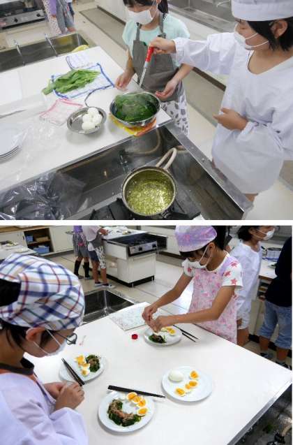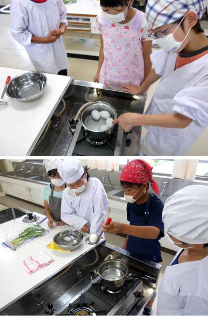 ゆで卵とホウレン草!5年調理実習