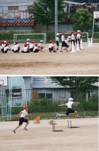 4年生が体育館で跳び箱にがんばっていました。なかなか飛び越えれない子どももいますが、段階的に練習をがんばっていました。外ではハードルの練習もしていました。