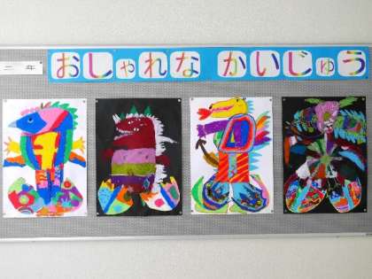 2年生が描いた「おしゃれな怪獣」です。卵から生まれたばかりです。
