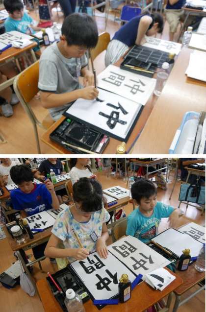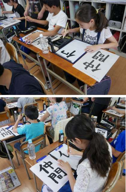 6年生が習字をしています。題字は「仲間」です。いよいよ最終最高学年です。すばらしい仲間になってほしいですね。