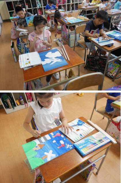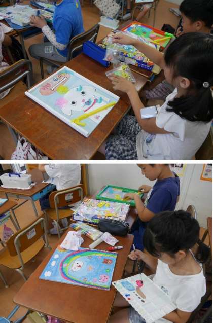 4年生では、図工でコリントゲームを作っています。ようやくゲーム盤の下絵の着色がおわってきました。次はクギうちですね。