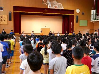 全校朝会で、校長先生から、明日の夏至についてお話をしました。1年で一番夜が短い日です。明日を境として夜が長くなっていきます。大阪では9時間31分が夜です。