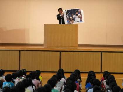 また、先週大きく報道され話題となった、大リーガーのイチロー選手についてお話しました。イチロー選手は高校の時から、常に試合の反省をを冷静にし改善する努力を継続してきています。継続して努力する天才ともいえます。今回の記録は地道な努力の積み重ねで生まれたものなのですね。みなさんもそんなイチロー選手を見習って学校生活でがんばってほしいと思います。