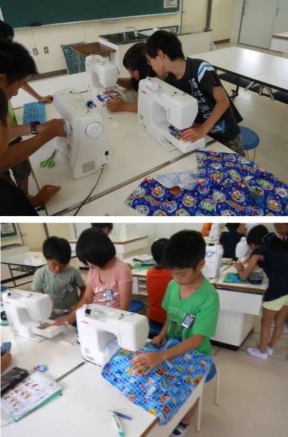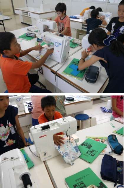 5年生の家庭科の授業では、ミシンの練習が始まりました。糸を順番にかけて、下糸をセットしてミシンを走らせます。うまくいくかな?
