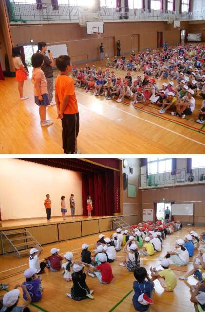 今日の児童集会はまるばつクイズでした。焼野小学校に関するクイズなどがありました。