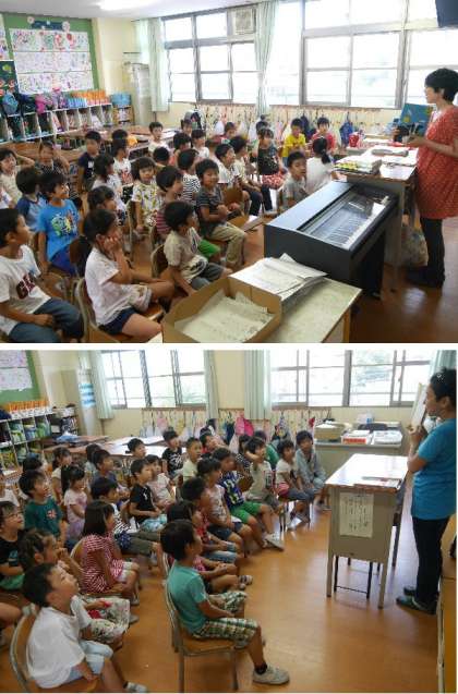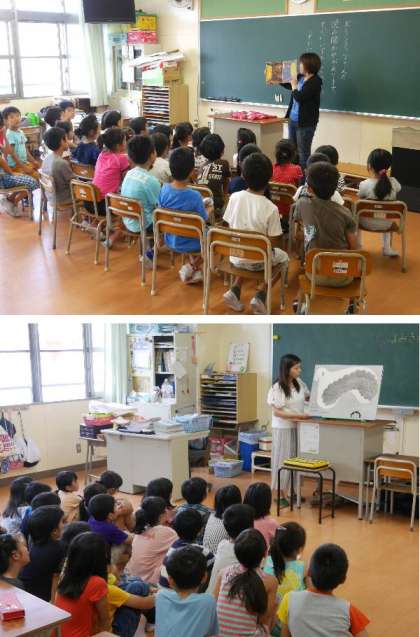図書ボランティアさんによる読み聞かせが1・2年生でありました。1年生では英語の本が読まれていました。とても面白そうです。