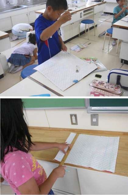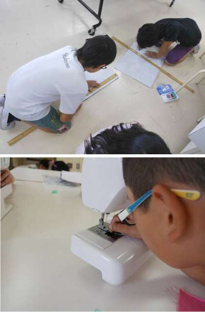 5年生では、ミシンをつかってナップザックを作っています。できあがったら、林間学習で使うことができます。じょうぶになるように作ってくださいね。