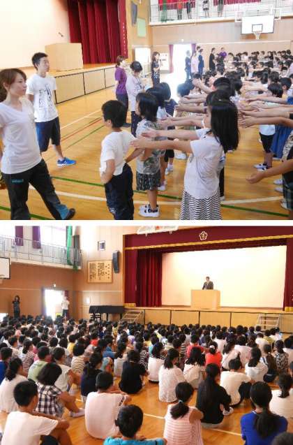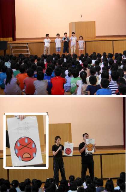 全校朝会で、環境委員会よりやけのの8の日の連絡や、保健室の先生から熱中症についてのお話がありました。今日はも暑いので注意が必要ですね。