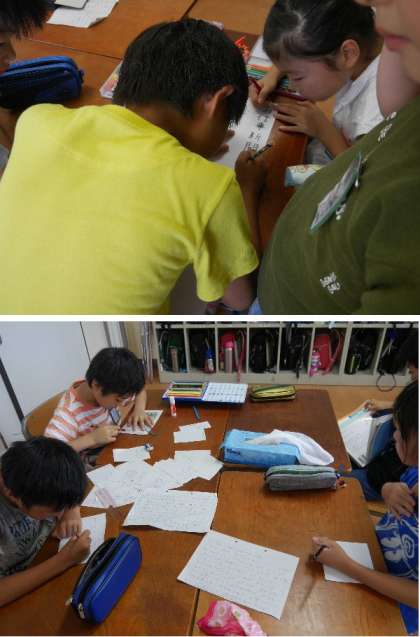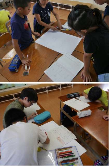 4年生の国語では、新聞づくりをみんなでしています。読む人の興味をひくようなわりつけや見出しを考えていきます。記事を書くときには、「いつ」「どこで」「だれが」「どうした」を落とさずに書くことが大切ですね。
