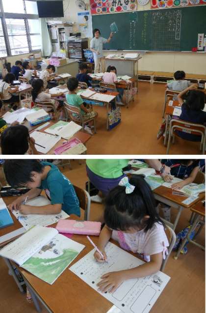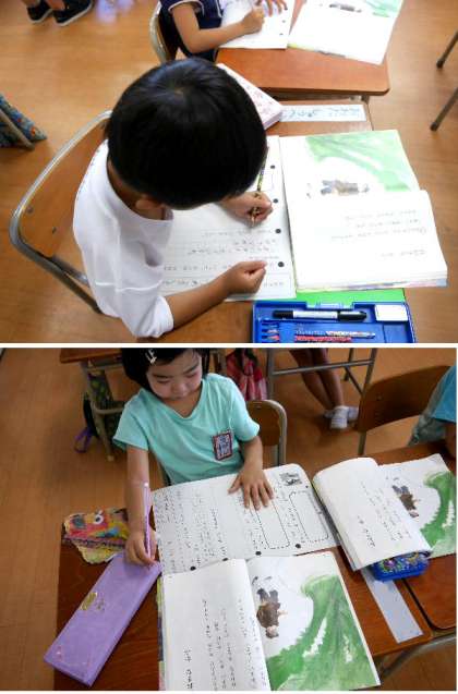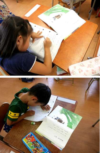 1年生の国語では「おおきなかぶ」を学習しています。文章からおじいさんとかぶのようすをよみとっています。はなしことばの「」の書き方を練習していました。