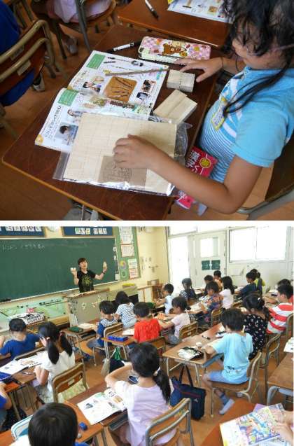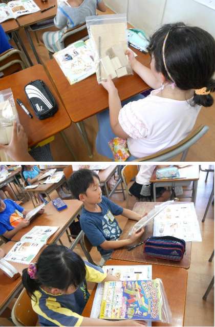 3年生の図工では、木片をくぎうちして作品作りがはじまりました。木片のいい木のにおいがします。どんな作品ができるかな。