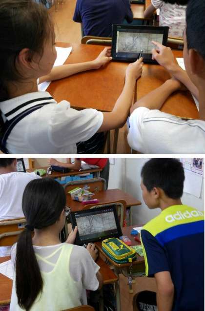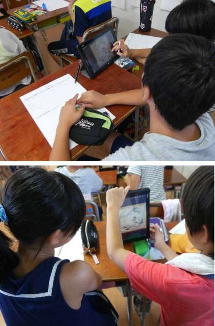 6年生がタブレットから資料を表示させて学習していました。