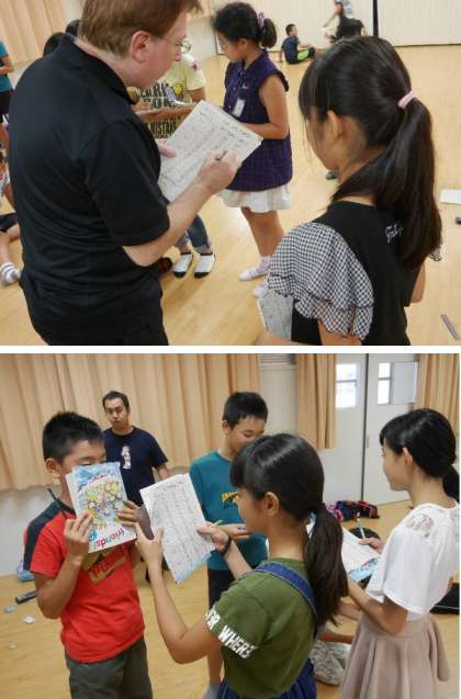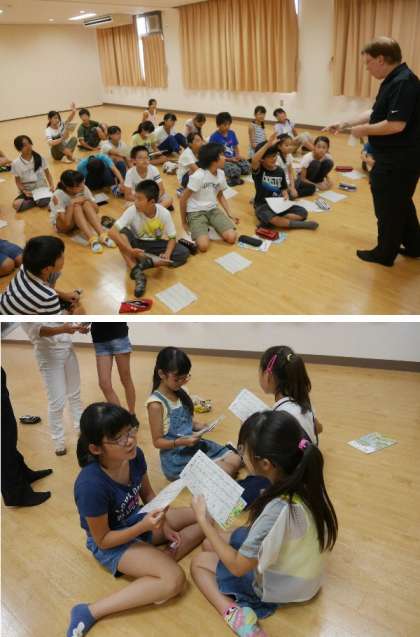 今日は1学期最後のネイティブ英語のスティーブ先生の授業でした。自分の好きな食べ物、スポーツ、動物を答えて自分の名前をサインしあっています。最後に好きな物から誰かをあてていきます。とても楽しそうです。英語でお互いにやりとりしていきます。学級で6人からサインをもらわなければなりません。