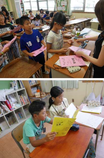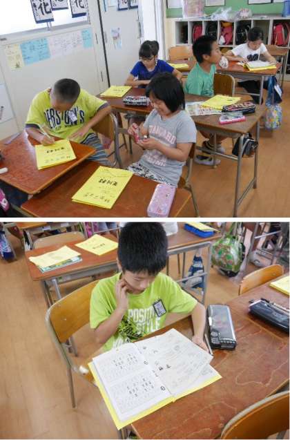 もうすぐ夏休みです。まちにまった5年生の林間学習があります。林間のしおりができあがったので、皆でとじています。楽しみですね。
