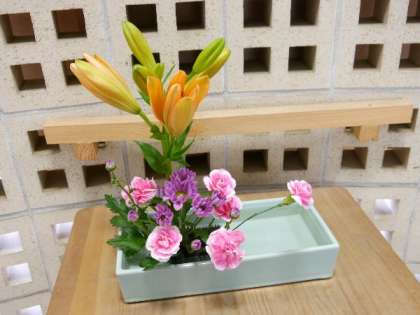 いつも活けていただいている玄関の花が変わりました。この時期は暑さですぐに枯れてしまうので残念ですが、はかない生け花の美しさに感銘する鑑賞する心をもちましょう。