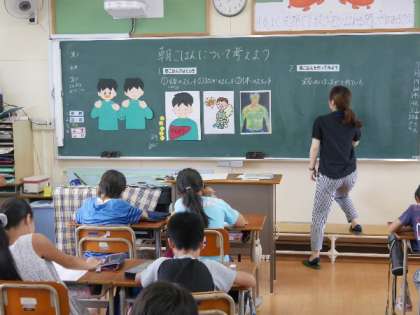 鶴見区の栄養教諭の先生にきていただき授業をしていただきました。今回は「朝ごはんについて考えよう」です。朝ごはんのはたらきについて考えましたて。頭のスイッチ、おなかのスイッチ、体のスイッチをオンにするために、とても大切なものなんですね。毎日、かならず忙しくても朝ごはんはたべましょうね。