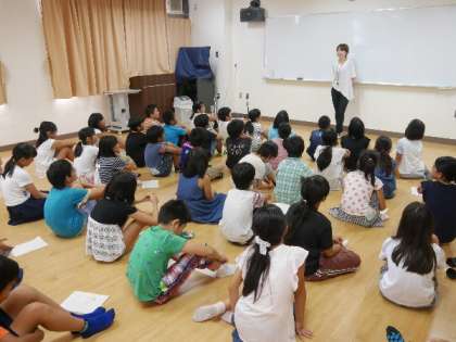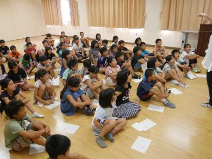 5年生が林間学習のキャンプファイヤーの練習をしていました。
