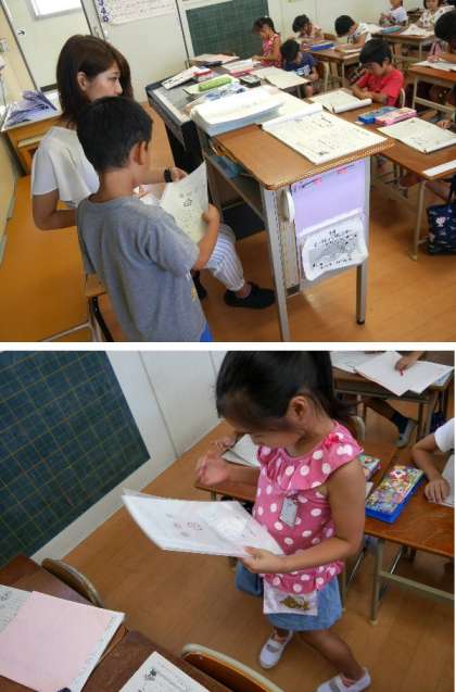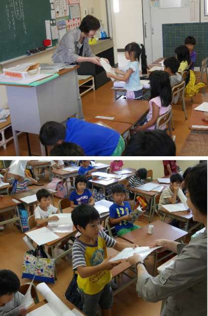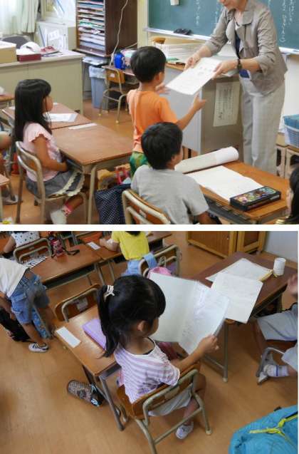 終業式のあと、各学級で配布物をもらったり、担任の先生のお話を聞きました。1年生は初めての通知表をもらいました。
