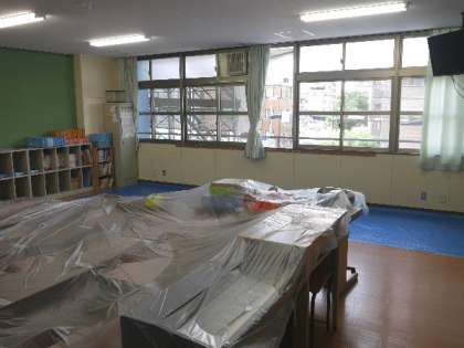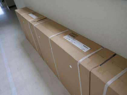今日から夏休みになりました。各教室ではエアコンの設置工事が始まりました。真新しい室内機も運び込まれてきました。