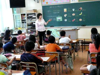 鶴見区の栄養教諭先生にきていただき、4年生は「おやつについて考えよ」の授業をしていただきました。