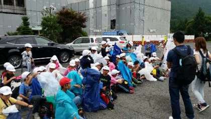 天川村の役場に着きました。雨は小ぶりですが、歩いて行きます。