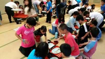 おいしく夕食をたくさんいただきました。これから夜の集いがあります。少し天候が悪いので、今日のキャンプファイアを明日と入れ替えます。