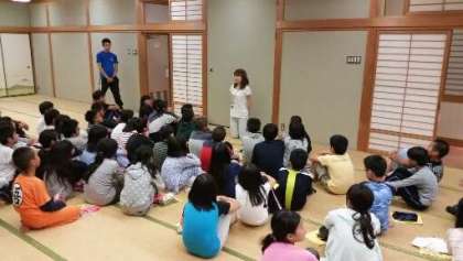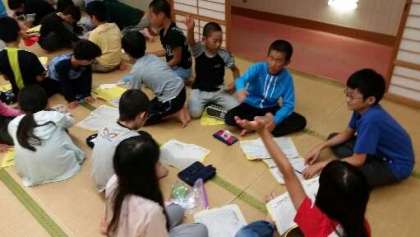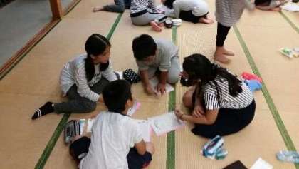 肝だめしから帰って、大広間で反省会をしました。班で話し合いして発表しました。