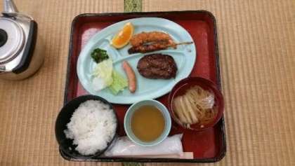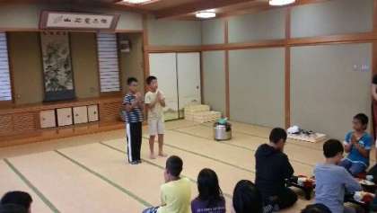 お風呂からあがり、今から夕食です。今日もおいしいそうです。しっかり食べてキャンプファイアにそなえます。