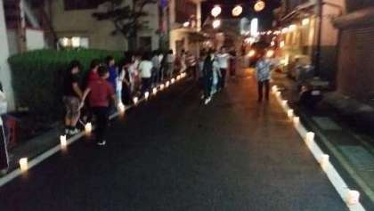 キャンプファイアのサプライズで用意していたファイヤーロードを宿舎前で行いました。