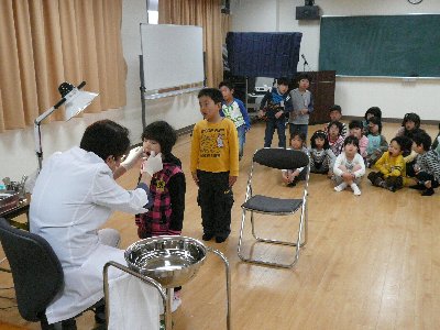 先週には視力検査、来月には聴力検査やぎょう虫検査、尿検査、内科検診、眼科検診と続きます。大切な身体の健康診査です。虫歯のあった人は早めに治療しましょう。
